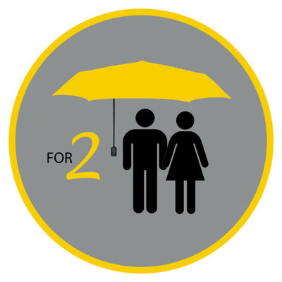 Der neue Partnerschirm bietet dank der seitlich angebrachten Haltestange genügend Platz für zwei Personen.